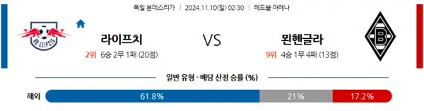 [축구] 11월 10일 분데스리가 라이프치히 묀헨글라트바흐 해외축구분석 스포츠분석