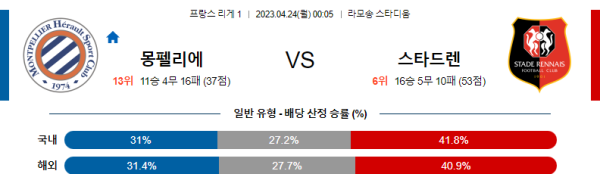 [레이저티비] 몽펠리에 렌 분석 4월24일 리그 스포츠중계