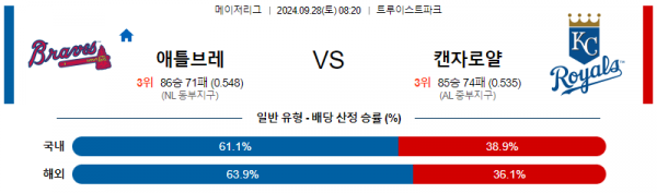 [야구] 9월28일 08:20 MLB 애틀랜타 캔자스시티 해외야구분석 스포츠분석