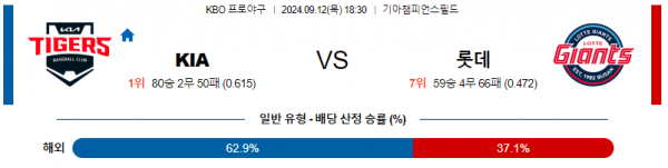 [야구] 9월 12일 18:30 KBO KIA 롯데 한일야구분석 스포츠분석