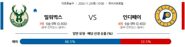 [농구] 11월 23일 NBA 밀워키 벅스 인디애나 페이서스 미국프로농구분석 스포츠분석