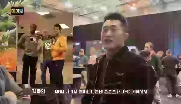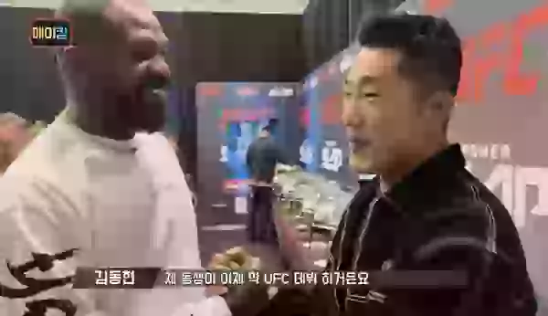김동현에게 장난치며 다가오는 UFC 챔피언 존 존스
