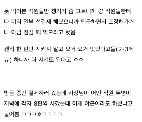 직원들한테 피자 쏘겠다고 했더니 8판 포장한 직원이 있네