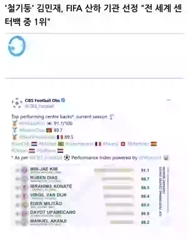 현재 전세계 중앙 수비수 1위, 최고의 명문팀 핵심자원