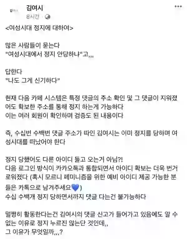 페북 김여시가 직접 말하는 정지 안먹는 이유