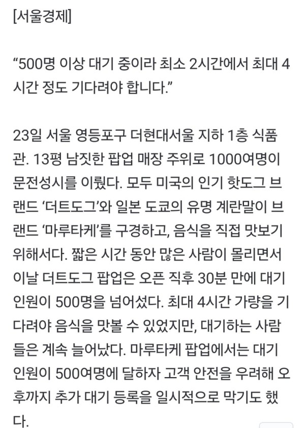 '4시간 기다려야 먹는다' 여의도 더현대 근황