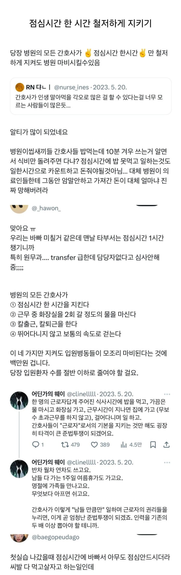 전국의 모든 간호사들이 점심시간 1시간을 철저하게 지키면 병원이 마비된다고 함.jpg
